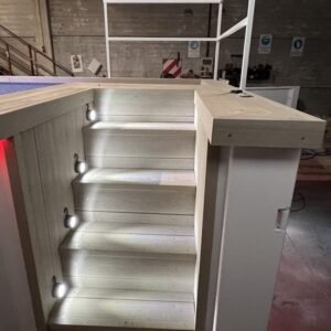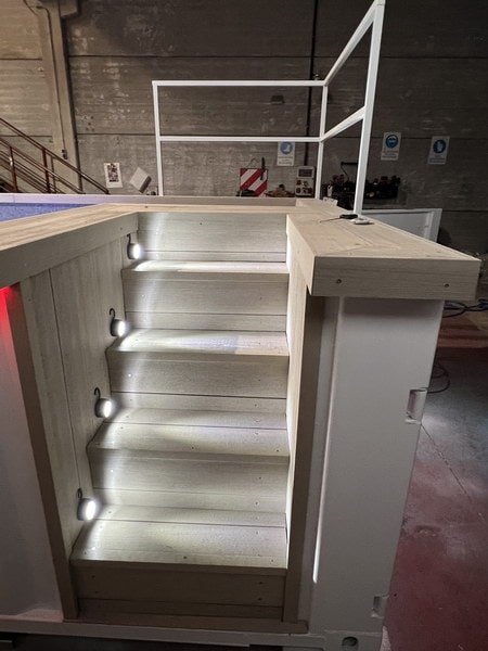 Interiores en composite WPC (madera tecnológica): suelos y escaleras resistentes, antideslizantes y de bajo mantenimiento.